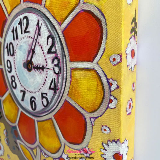 "Afternoon Delight" Vintage Daisy Clock Acrylic Painting