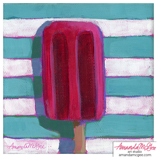This art print is an archival high-quality limited edition reproduction of the acrylic painting "Berry Popsicle" and is available in two sizes.